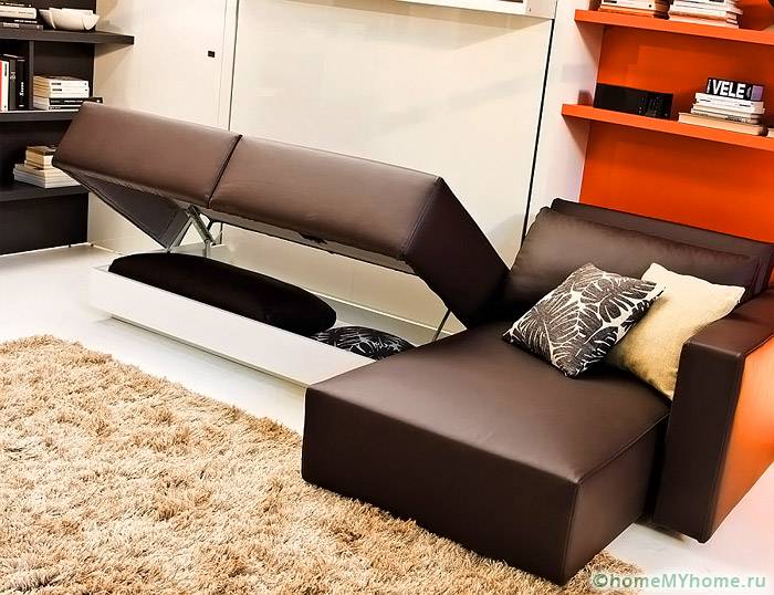 Може да е разтегателен диван с отлично вградено място за съхранение. Можете да допълвате слушалките с тахти, рафтове и гардероби.