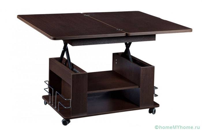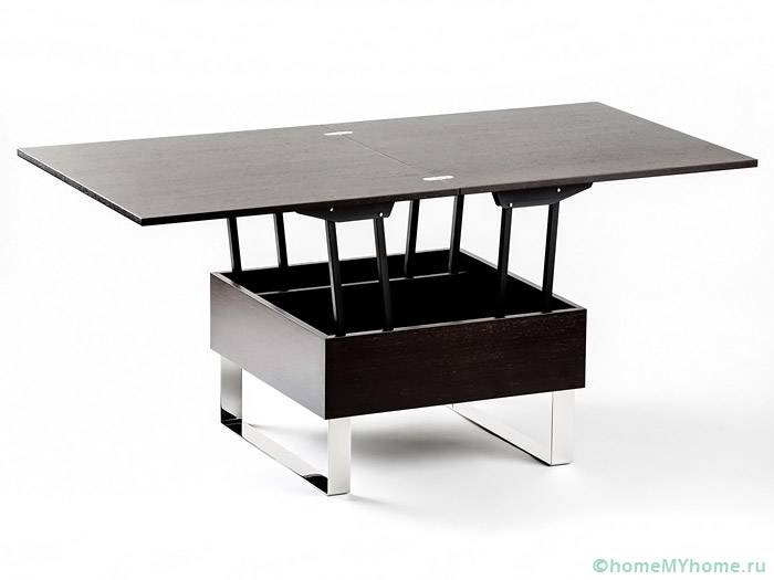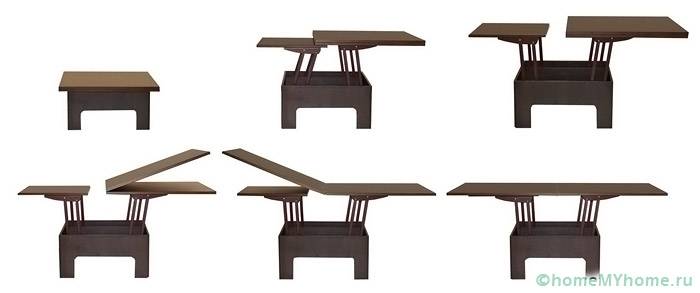 - масичка за кафе трансформатор се превръща в маса за вечеря... Основата на модела е масивен шкаф. Често се използва в хола;