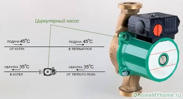 Ако се извършва принудителна циркулация на течността, тогава в участъка от котела до колектора се монтират помпени станции и смесителни възли за изпомпване на вода. Температурата в системата се контролира от автоматизирани механизми и сензори.