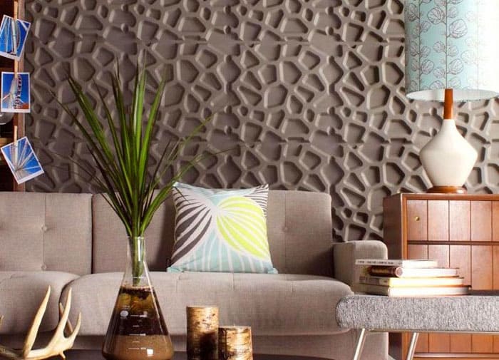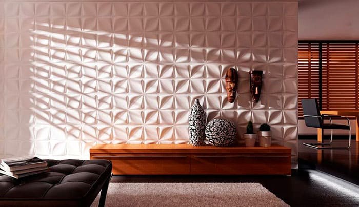 Panel 3D untuk dinding di pedalaman: reka bentuk asli dan timbul