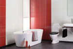 Kemasan keseluruhan atau sebahagian dinding di belakang tab mandi sangat mengagumkan