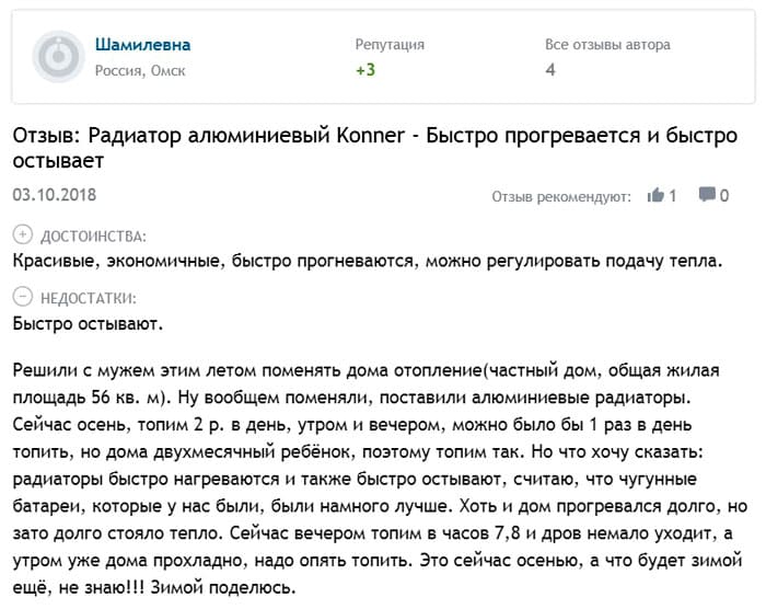 Ulasan radiator aluminium "Konner":