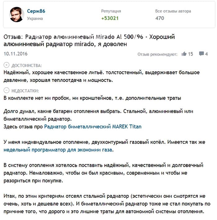 Ulasan radiator aluminium "Mirado Al 500/96":