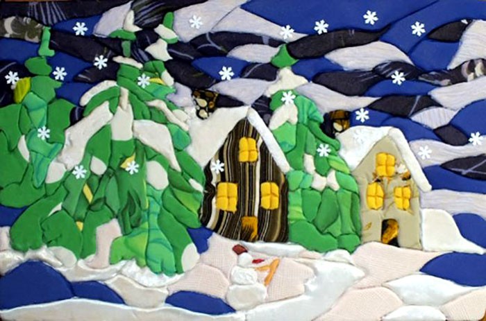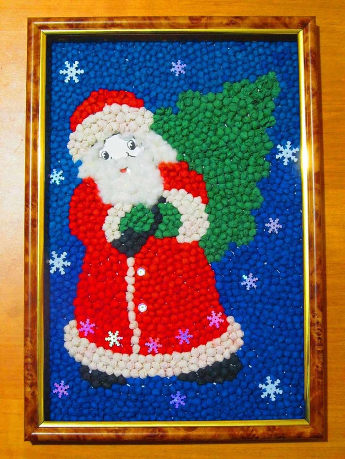 Kerja seperti ini dilakukan bukan hanya dari gumpalan plasticine, tetapi juga dari kertas yang berlainan warna.
