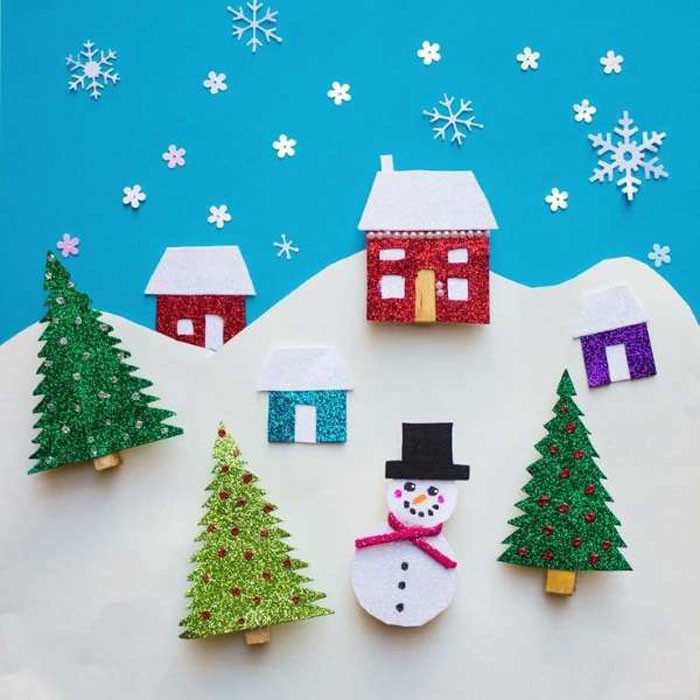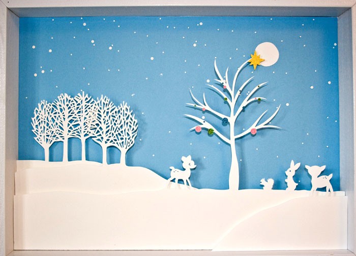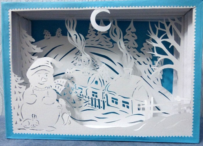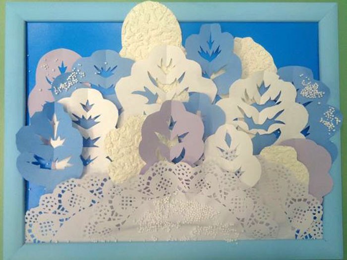 Ia sangat indah apabila karya ditutup dengan pernis glitter - seolah-olah cahaya matahari berkilauan di atas salji salji kertas.
