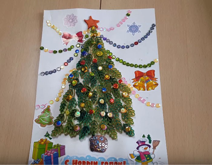 - 3 Komposisi aplikasi buat sendiri untuk kad dan panel Tahun Baru: teknik yang berbeza di tempat kerja