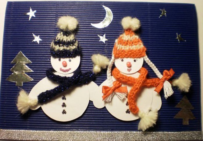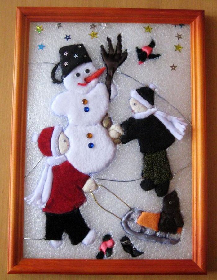 Komposisi aplikasi buat sendiri untuk kad dan panel Tahun Baru: teknik yang berbeza di tempat kerja