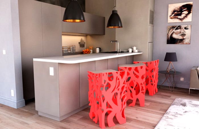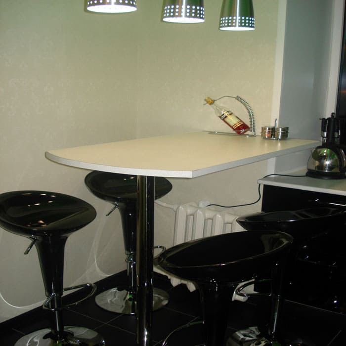 Terutama untuk ketinggian seperti itu, permukaan kaunter bar juga menghasilkan kerusi yang tingginya kira-kira 60 cm di atas lantai.