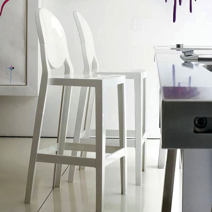 Pada awal abad yang lalu, avant-garde memasuki kawasan pedalaman dengan langkah berani dan menyapu banyak penyelesaian tradisional dengan kombinasi warna asli dan bentuk perabot. Kerusi tinggi sesuai dengan gaya ini.