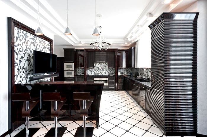Mereka sesuai dengan banyak gaya seperti berteknologi tinggi dan minimalisme. Kelestarian bukanlah ciri perabot ini, jadi pilihan ini bukan untuk rumah dengan anak-anak. Tetapi model sedemikian kelihatan sangat bergaya dan moden.