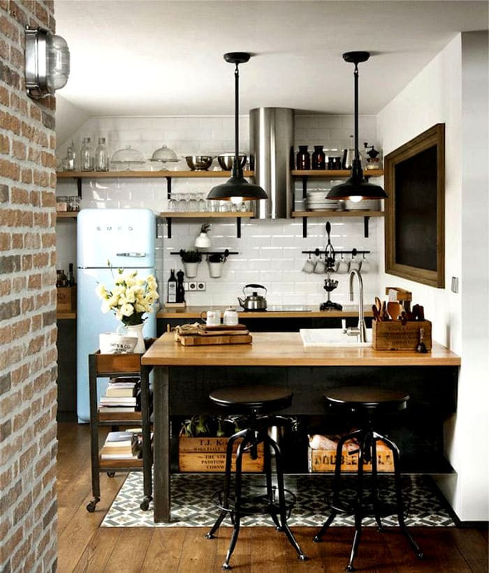 Jangan berputus asa di kaunter bar dengan kerusi di dapur. Ini adalah suasana khas perhimpunan mesra malam dan rupa dalaman dapur yang asli.