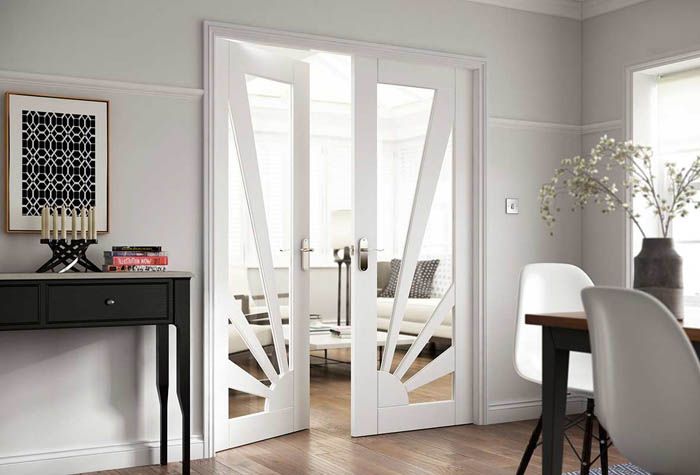 Reka bentuk pintu berwarna putih dan kemungkinan kombinasi mereka dengan hiasan bilik yang selebihnya
