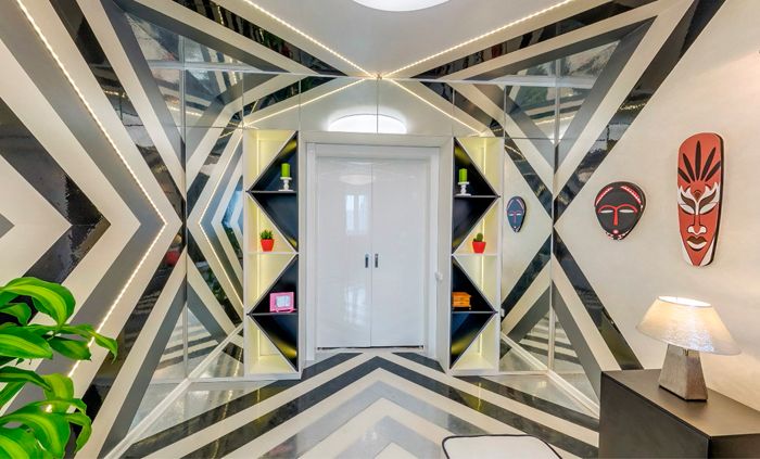 - sesetengah orang tidak menyukai kesederhanaan model itu, dan ada kemungkinan mereka ingin menambahkan aksen warna di dekat pintu masuk bilik.