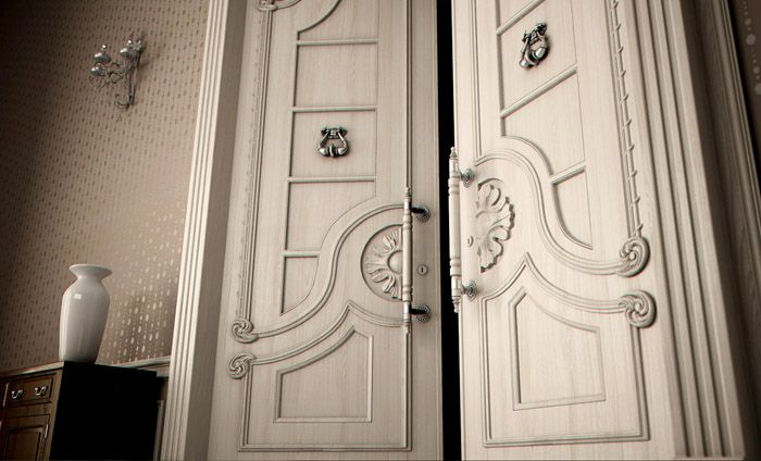 Sebelumnya, model, dihiasi dengan ukiran, raja dan bangsawan yang setia melayani, mereka dihiasi dengan batu dan logam berharga. Era masa lalu telah meninggalkan banyak elemen pada masa lalu, sangat memudahkan permukaan produk pintu. Ini membolehkan kami mengurangkan harga dengan ketara.