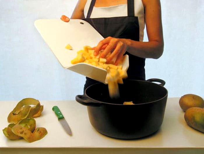 Berapa kali anda menghadapi masalah apabila sayur-sayuran cincang meluncur dari papan pemotong ke arah yang berbeza? Oleh itu, masalah ini juga dapat diselesaikan dengan mudah.
