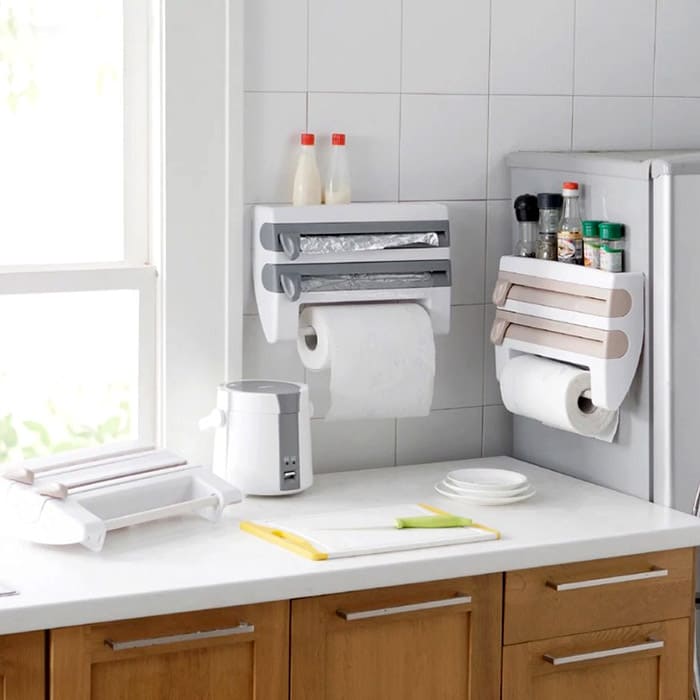 Pemegang gulungan menjadikan hidup lebih mudah juga. Ia mengandungi tuala kertas, kerajang dan kertas pembakar