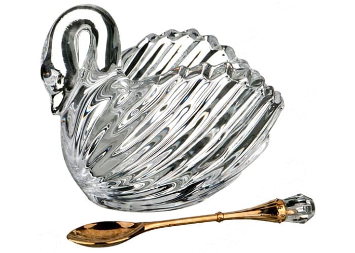 Di dalam apa anda menghidangkan sos? Jam? Tetapi seseorang mempunyai angsa cantik yang melayang di atas alas meja!