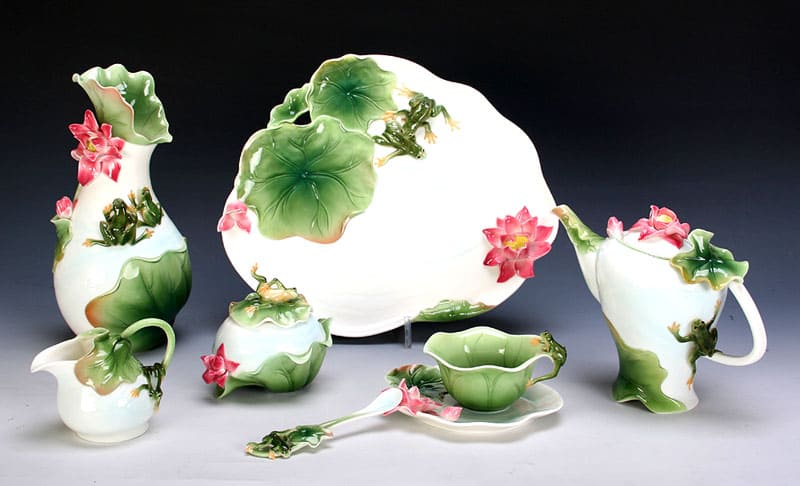 Pencinta perkhidmatan yang canggih dapat mencari makanan yang sesuai untuk makanan mereka. Dalam set sedemikian, semuanya disediakan: dari pengocok garam dan sudu hingga teko. Hiasan meja yang benar