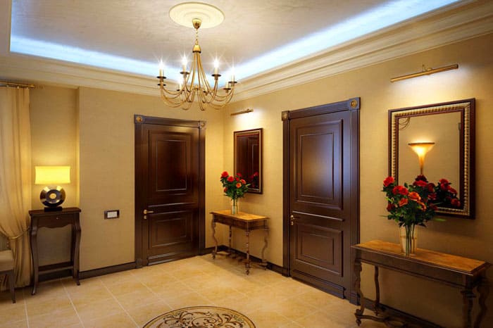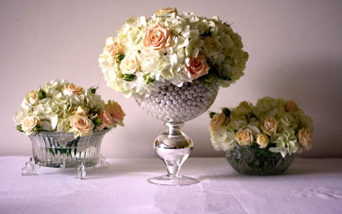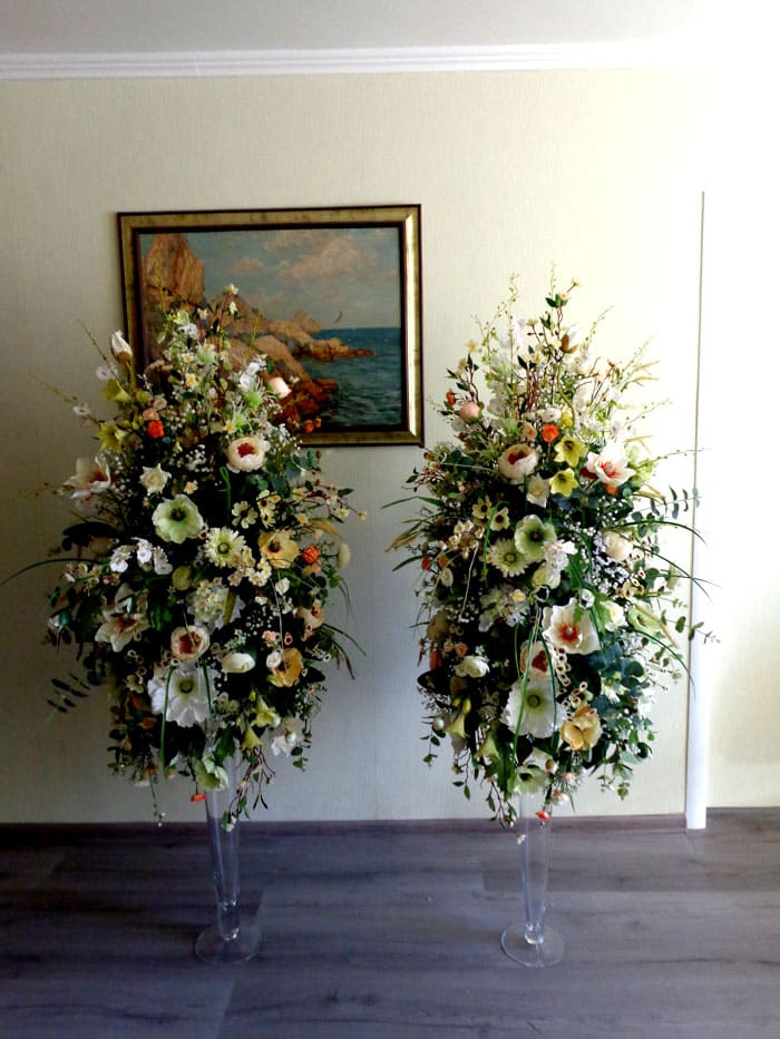 Pasu dengan karangan bunga boleh berdiri di lantai, di mana ia tidak mengganggu, begitu juga pada konsol, meja rias di dekat cermin