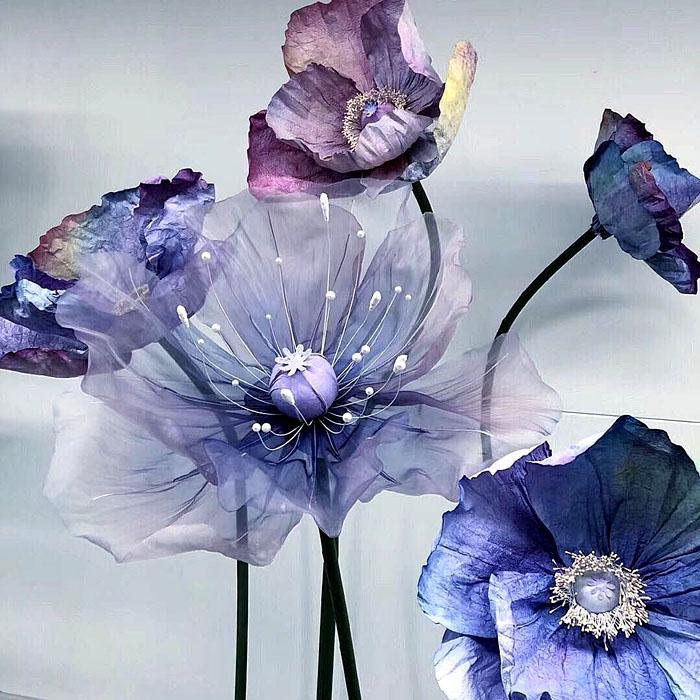 Bunga besar diletakkan sama ada dalam kumpulan kecil atau secara tunggal.Lebih baik meletakkannya di sudut bebas.
