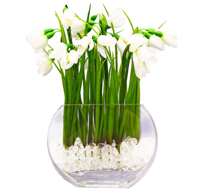 Pasu paling kerap terletak berhampiran katil di atas meja di sisi katil. Air dituangkan ke dalam pasu kaca untuk persepsi lengkap tanaman sebagai mata pencarian