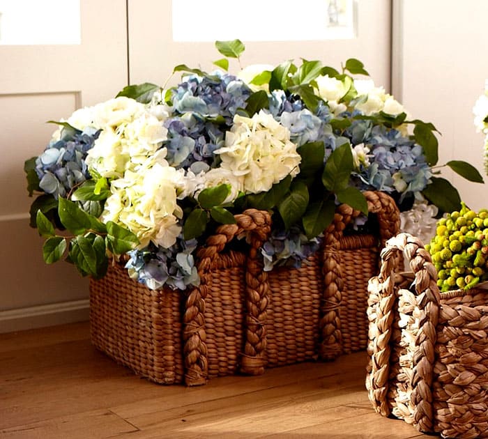 Bakul anyaman boleh dibuat dari pokok anggur willow, plastik, malah tabung surat khabar, jika kita bercakap mengenai sejambak yang dibuat sendiri. Pelbagai bakul dan bentuknya telah lama dihantui oleh penjual bunga yang telah menggunakannya dan terus memukau kami dengan komposisi yang indah.