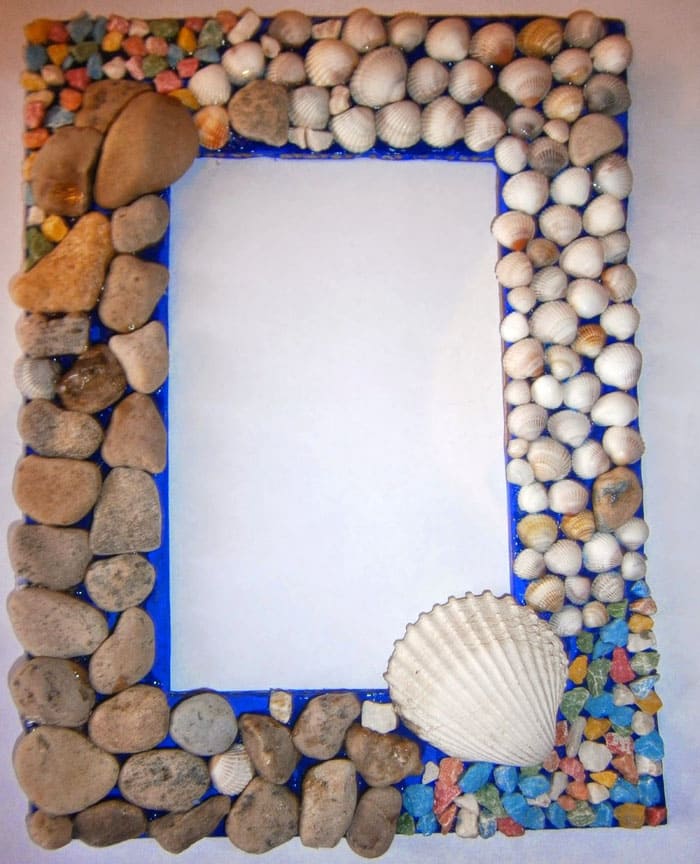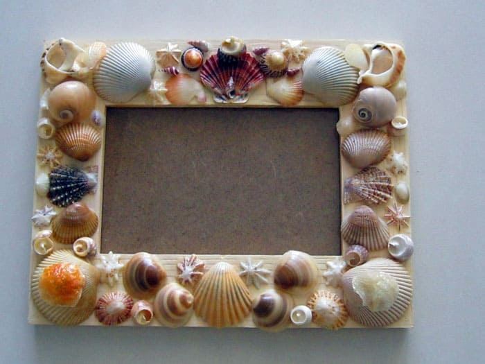 Bagaimana menghias bingkai foto kayu? Sekiranya bilah hanya berfungsi sebagai pangkalan, maka anda boleh melekatkan cengkerang di atasnya, mengikat sudut dengan benang, melekat bulatan di sekeliling perimeter.