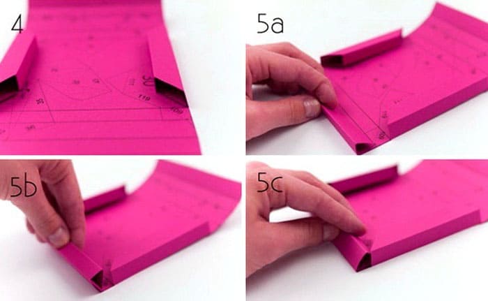 Untuk kertas berkilat dan terlalu tebal, lebih baik memasukkan foto terlebih dahulu, dan kemudian mulakan proses melipat sisi.Tidak dilarang meletakkan struktur pada gam atau pita dua sisi untuk kekuatan yang lebih besar.