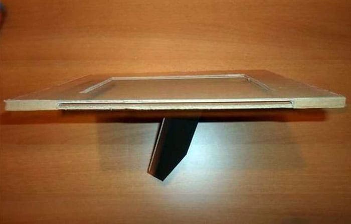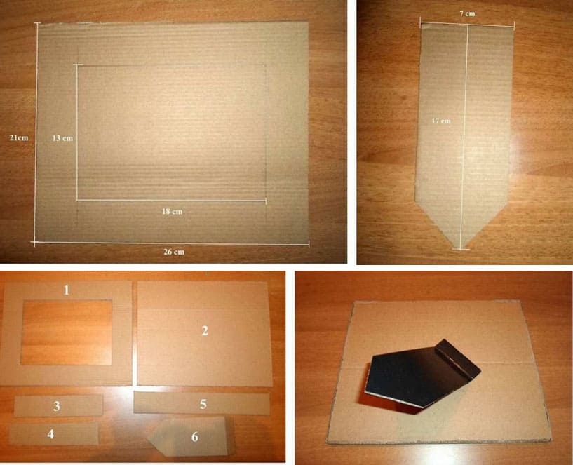 Dari kadbod anda perlu memotong bentuk untuk foto, dengan mengambil kira ukurannya. Tidak ada yang memerlukan geometri yang sempurna, sebenarnya, bingkai apa pun boleh.