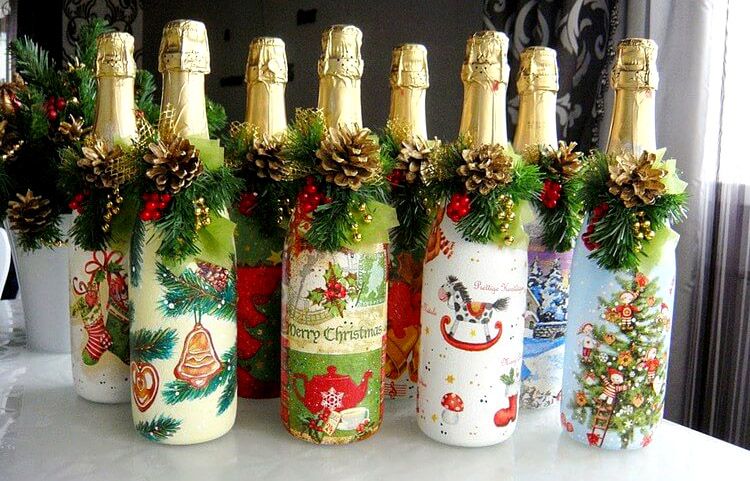 Adakah anda ingin mencuba hiasan yang dicadangkan, tetapi tidak tahu mana yang lebih baik? Oleh itu, tidak mungkin pesta Tahun Baru akan menelan kos sebotol sampanye atau wain, jadi hiasi setiap satu, biarkan keseronokan mengalir seperti sungai!