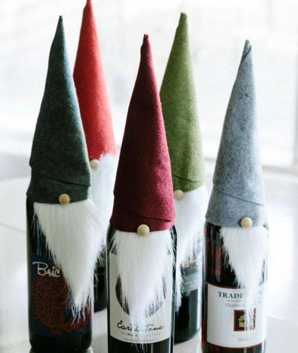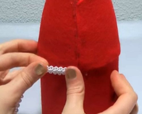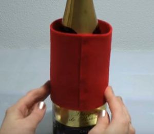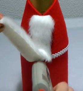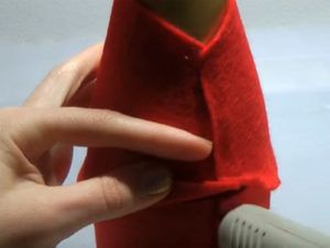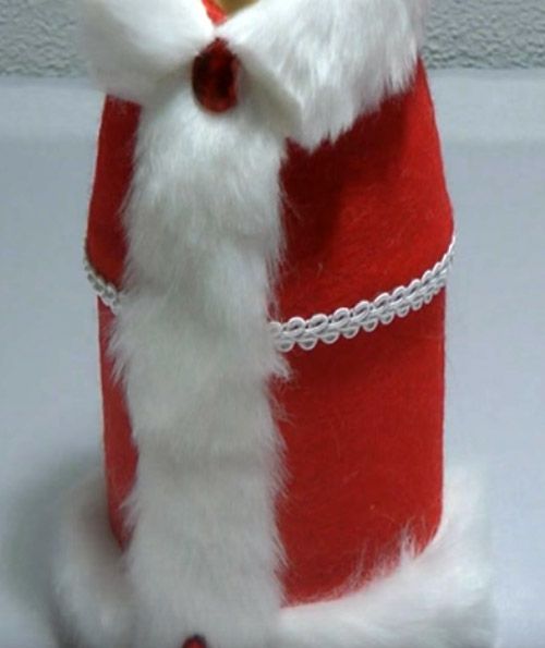 Cara menyediakan kostum Santa Claus yang elegan untuk sampanye untuk Tahun Baru dengan tangan anda sendiri