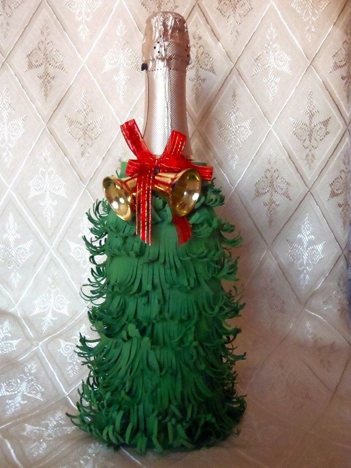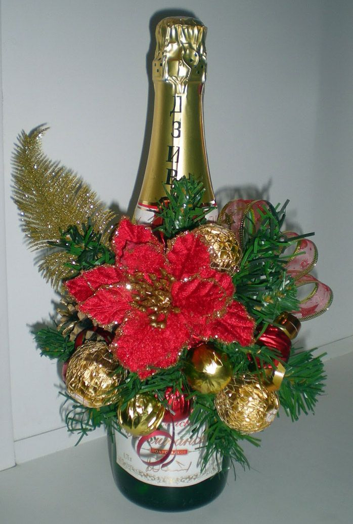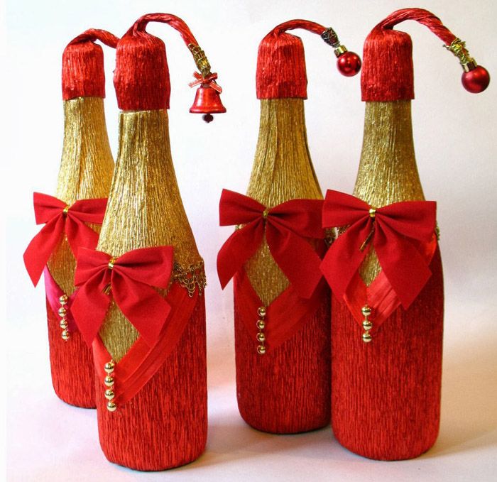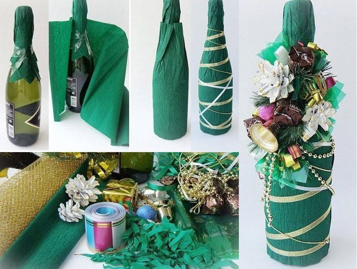 Present Hadiah yang indah untuk Tahun Baru dengan tangan anda sendiri: bagaimana anda boleh menghiasi sebotol sampanye