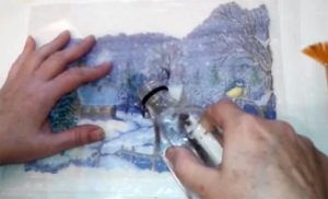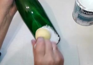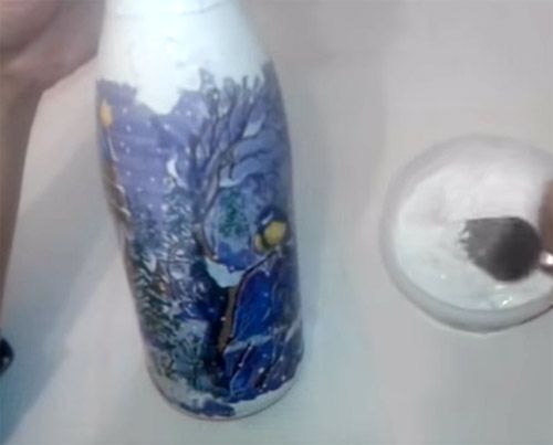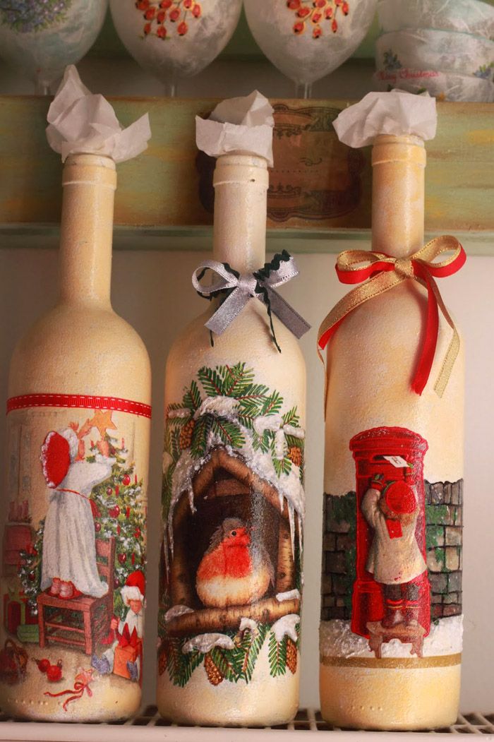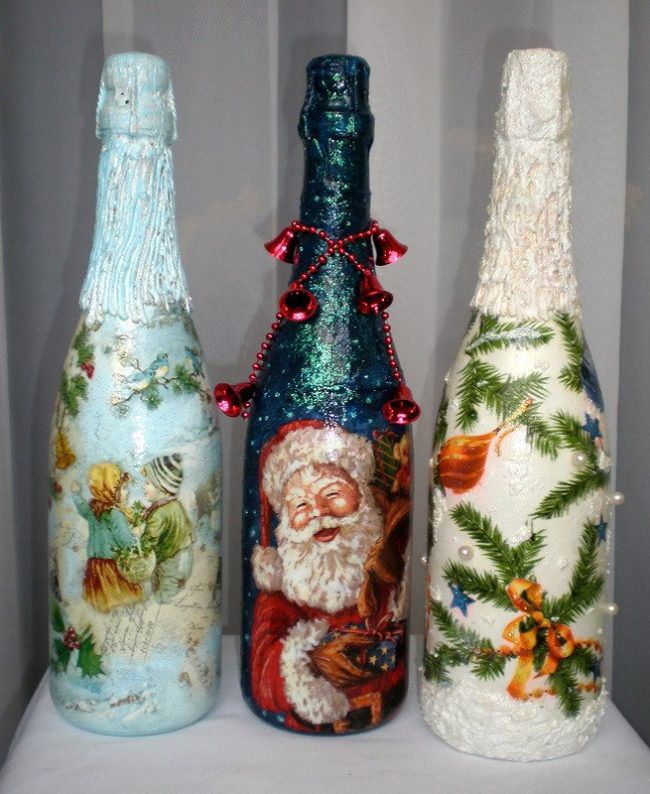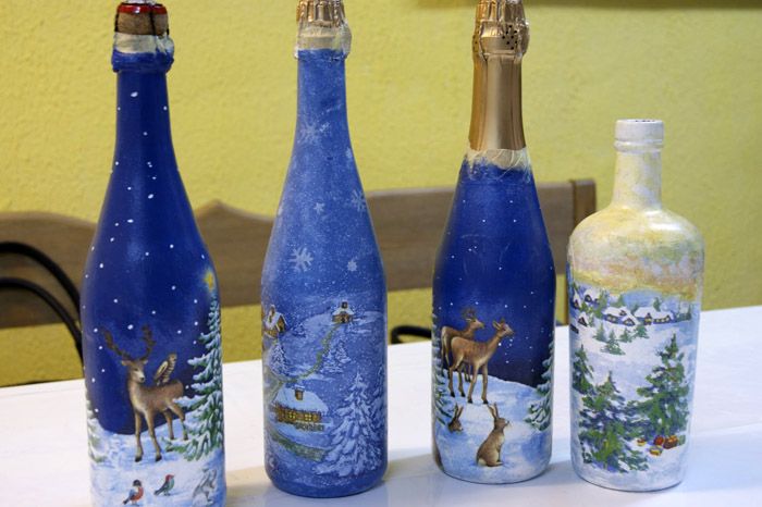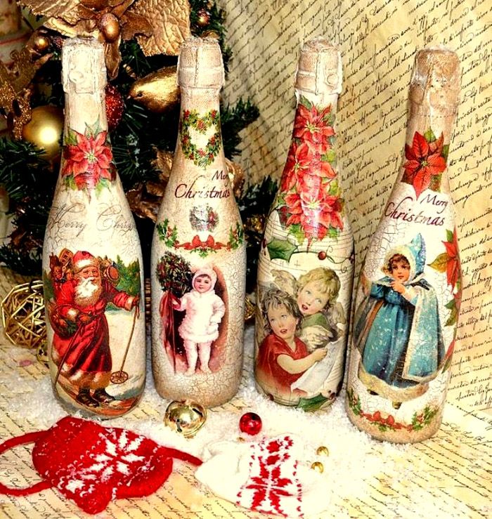 Botol sampanye dihiasi menggunakan teknik decoupage yang indah