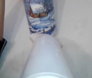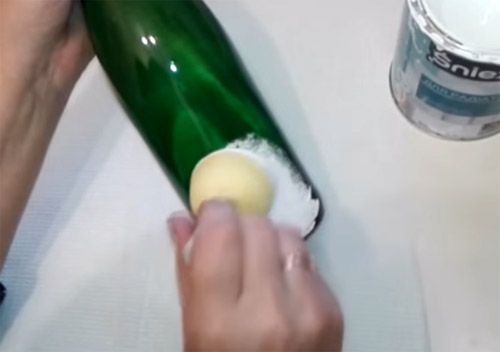 Kita memerlukan botol itu sendiri, alkohol, pistol termal, serbet Tahun Baru, fail kosong, pernis akrilik, cat putih akrilik, pisau palet, span lebar, sikat rata yang selesa, dempul kayu dan sedikit kesabaran.