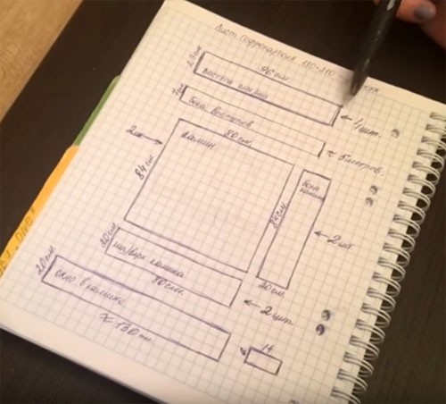 - Kami mengukur ruang untuk kotak api di dalamnya. Ia dapat dipasang dengan cara yang berbeza: ia boleh menjadi kotak kadbod kosong atau kotak dengan ukuran yang sesuai, atau hanya memasang kotak api dari papan lapis.