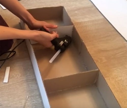 Yang paling mudah yang anda boleh tiru dari rumah adalah dari kotak kadbod. Di mana mereka mendapatkannya? Kedai-kedai penuh dengan barang-barang ini, dan jika anda meminta beberapa kotak yang rosak dan tidak diperlukan, mereka pasti akan berkongsi bahan ini.