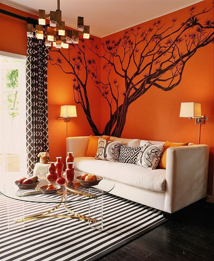 Warna mandarin dan oren juga cerah, musim panas. Selalu ada suasana positif dari bilik oren.