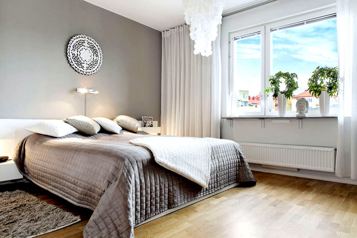 Sekiranya anda membuat dinding di seberang tingkap menjadi lebih gelap, maka kesan pengembangan ruang secara visual akan berfungsi di ruangan kecil.