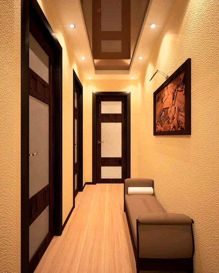 Lorong tidak selalu luas dan ringan, jadi di sini anda tidak boleh keliru dengan pilihan warna.