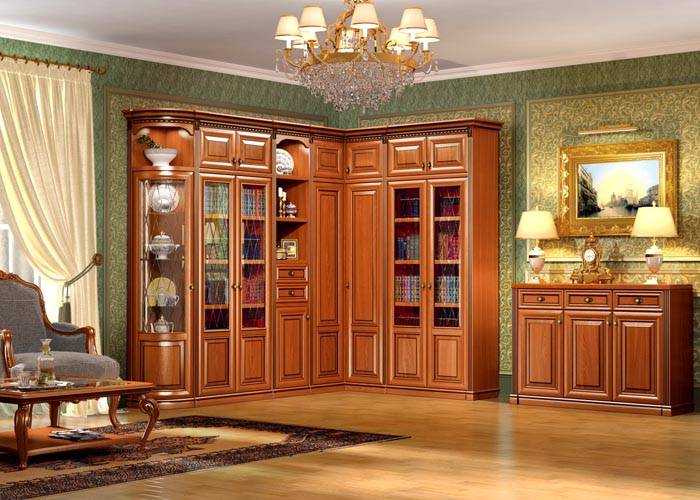 Perabot ruang tamu modular dalam gaya klasik: ciri khas dan foto pilihan menarik
