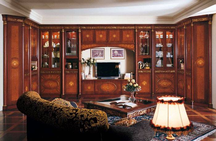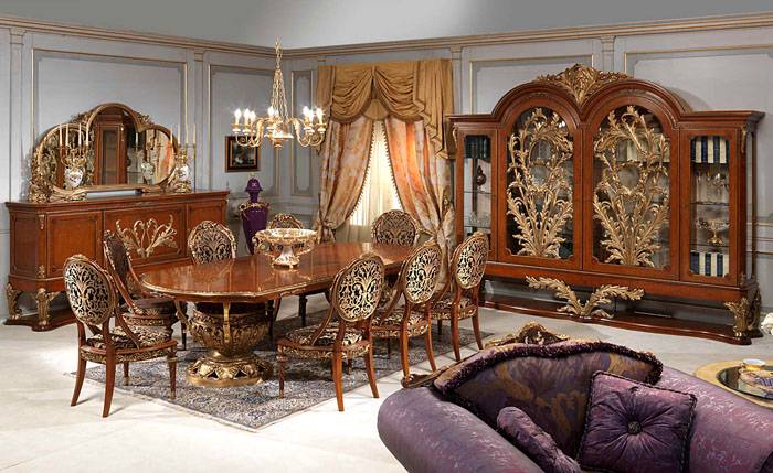 Perabot yang dibuat mestilah model mewah. Selalunya ia bertindih dengan gaya Baroque atau Empire, yang dipilih untuk umum bahagian dalam apartmen... Ukuran perabot yang berkait rapat dengan kawasan bilik. Penata rambut dalaman mengesyorkan memperhatikan perabot dengan pelbagai saiz supaya barang-barang yang dipilih dapat masuk ke ruang sekitarnya secara harmoni.