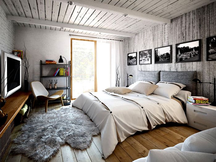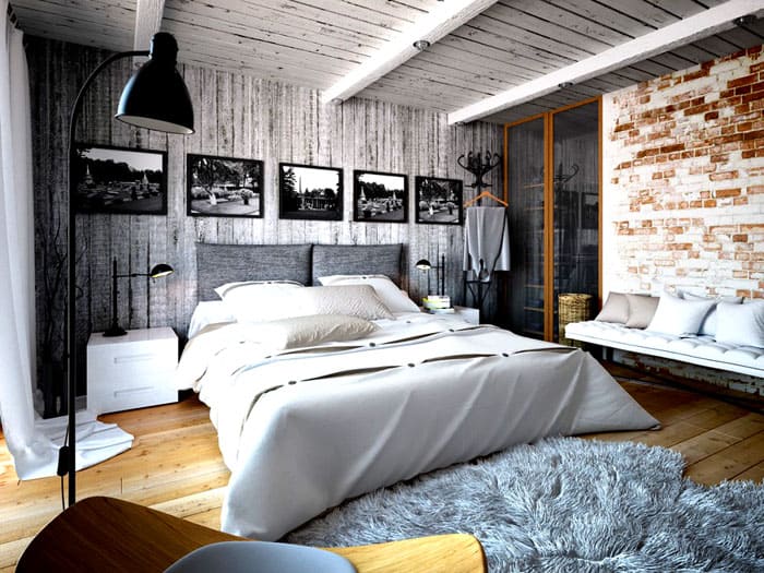 Bilik tidur kecil dirancang dalam semua tradisi loteng dari hiasan hingga perabot dan tekstil. Tiada kesesakan ruang dengan perincian kecil.