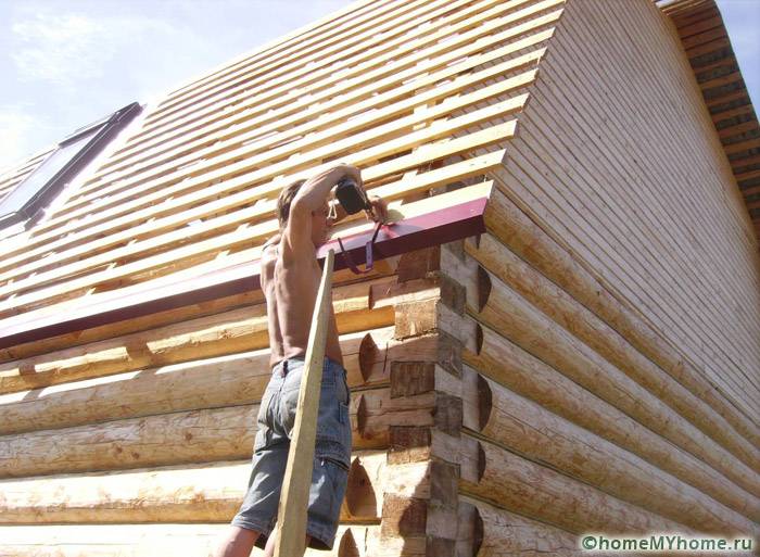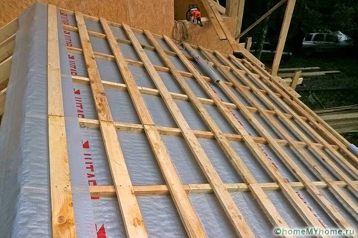 Batang 50x50 mm dipaku terus di sepanjang kasau, memberikan jurang pengudaraan antara kalis air dan bahan bumbung. Untuk pemasangan, paku sekurang-kurangnya 90 mm digunakan.
