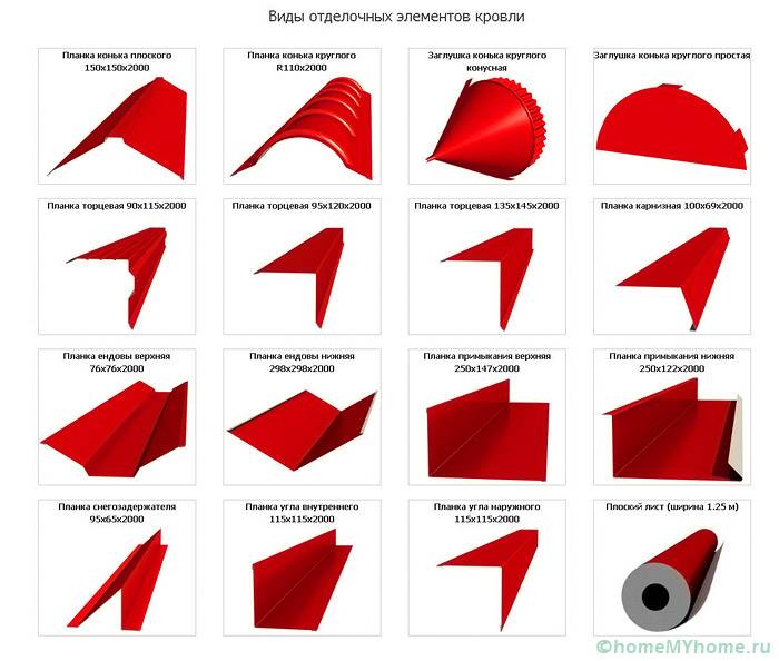 Dalam arahan langkah demi langkah untuk memasang jubin logam, elemen utama yang digunakan bersama dengan kepingan harus disebutkan. Mereka digunakan bergantung pada konfigurasi bumbung dan ciri operasi.