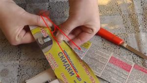 Di pangkal dengan corak yang digunakan, potongan dibuat dengan pisau perkeranian. Cincang itu secara harfiah ditekan ke dalam slot dengan hujung pisau atau jarum tebal. Ternyata menjahit tanpa menjahit seperti itu