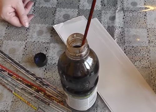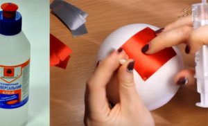 Kami mengambil mainan dan memburunya dengan PVA. Kami merobek sehelai serbet dan meletakkannya di atas bola. Dengan berus kita meluruskan lorong, mengelakkan penyimpangan dan kerosakan.