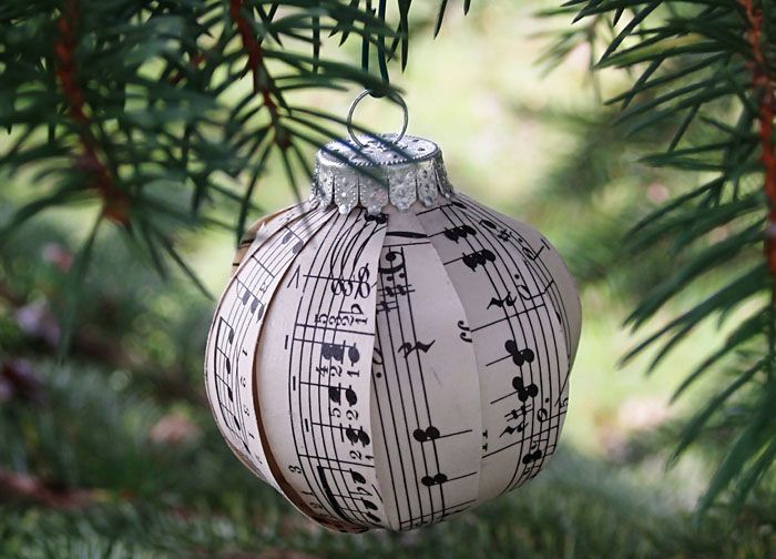 Bukan masalah untuk mendapatkan helaian muzik: kami menjumpai sebarang muzik di Internet dan mencetak beberapa halaman. Kami memotong jalur yang sama dan merekatkannya di tengah: kami mendapat bintang dengan banyak sinar yang diarahkan secara radikal dari pusat. Semua sinar juga harus dikumpulkan secara bergantian pada satu titik di bahagian atas. Bagaimana cara melekatkan mainan ke pokok Krismas? Anda boleh melekatkan pemegang siap pakai ke bola, atau anda boleh kreatif: pasangkan ranting buatan (holly) ranting ke kerajinan dan sembunyikan tali di bawahnya