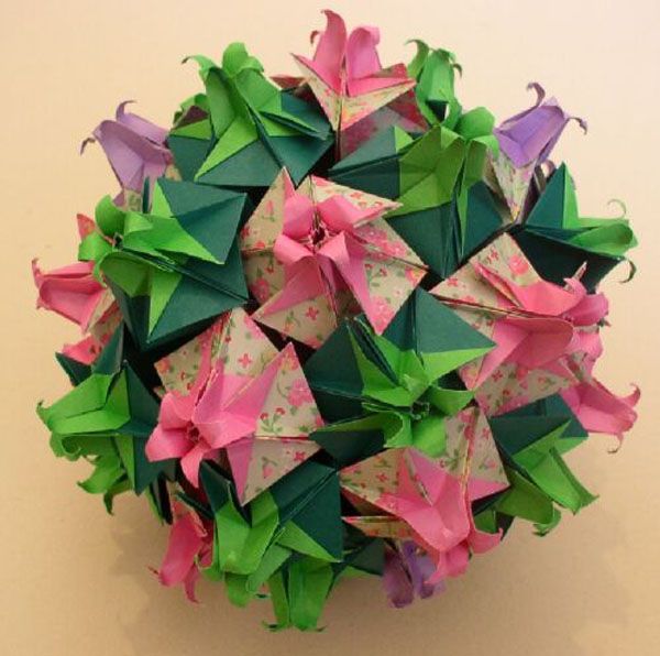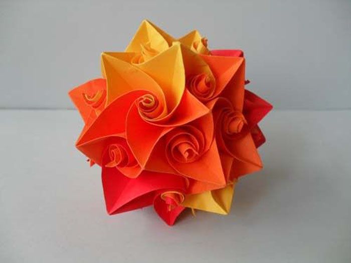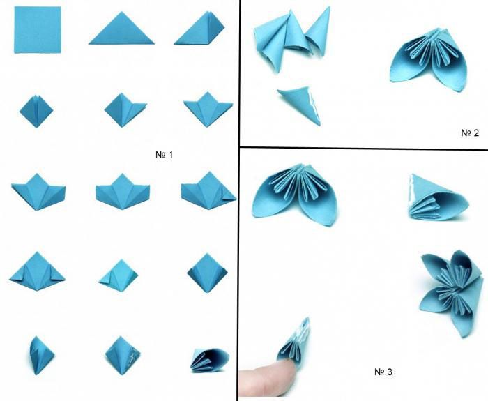 Anda boleh memulakan dengan memasang satu elemen. Sebaik sahaja bunga origami seperti itu muncul di tangan anda, anda akan mahu membuatnya berulang kali.