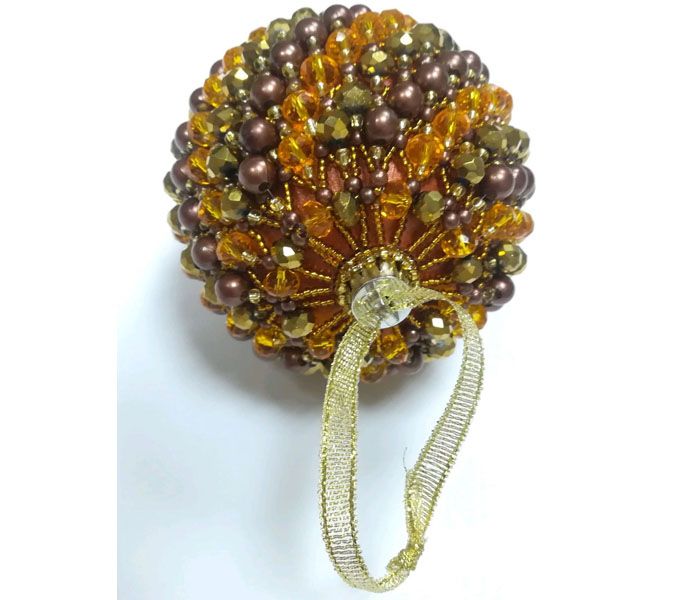 Bertindak mengikut corak tenunan manik, mereka mendapat mainan pokok Krismas hiasan yang tidak standard