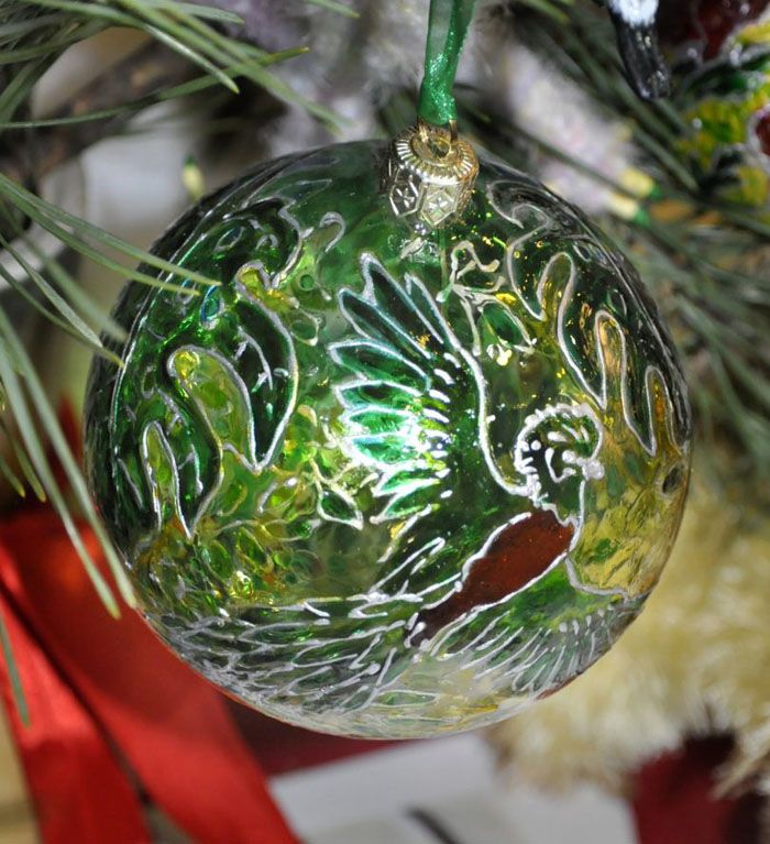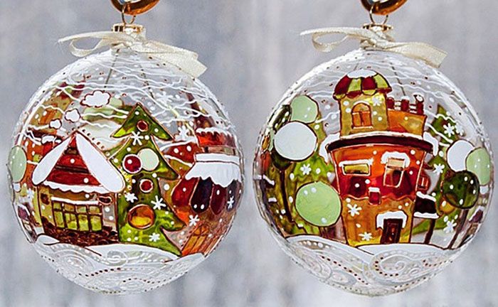 Untuk melukis, gunakan kontur pada kaca, pangkalan kaca, cat kaca berwarna dan berus nipis. Lukisan kontur diterapkan pada bola, dan kemudian semua ruang dipenuhi dengan cat warna yang diinginkan